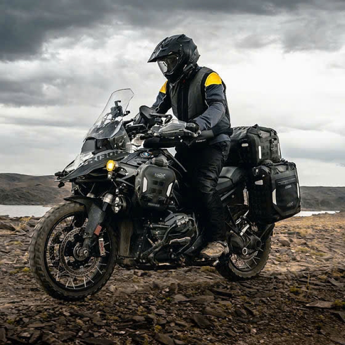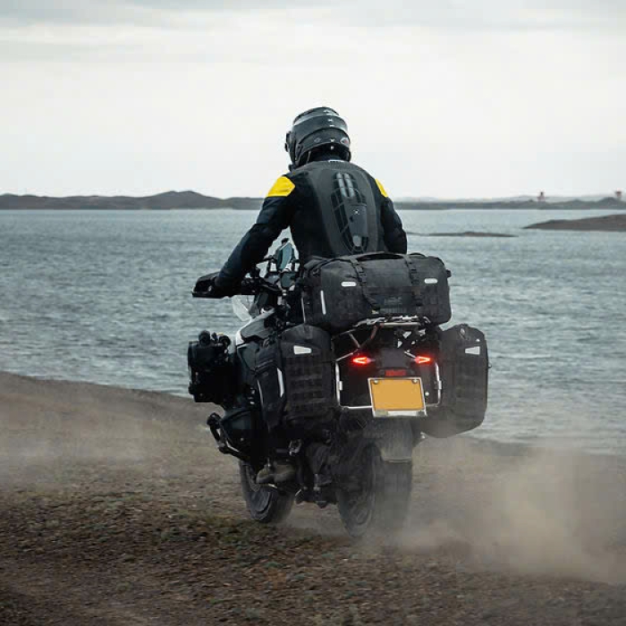 - BMW R1300GS, Honda CB500X hoặc tương tự, nhiệt độ cao từ ống xả thổi trực tiếp vào đáy túi, gây hư hỏng hoặc cháy khi xe nổ máy.